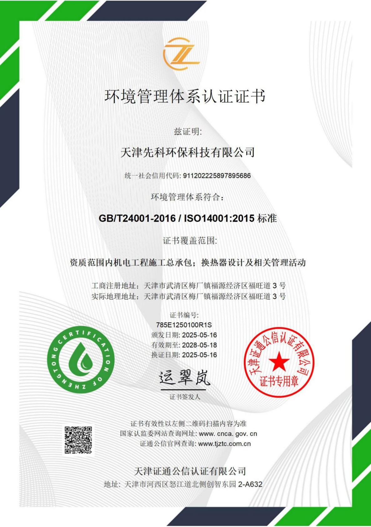 天津先科环保科技有限公司(原天津先科电器安装工程有限公司)成立于2012年,公司业务划分为三个板块,其一是致力于为企业提供全方位节能、环保技术解决方案的技术服务;其二是致力于自主生产各类非标换热设备、余热回收装置、水处理装置、烟气治理等环保设备;其三是致力于项目工程建设、机电安装、工业自动化、系统集成方面设计与施工,机电项目物资配套。 公司拥有自有完全知识产权的专利技术共···
